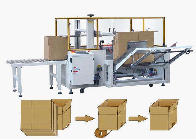 紙箱成型機是指自動完成開箱、成形、下底折葉折曲,并現(xiàn)時完成下部分膠帶粘貼,將疊成紙板的箱板打開,箱子底部按一定程序折合,并用膠帶密封后輸送給裝箱機的專用設(shè)備,又名紙箱開箱機。